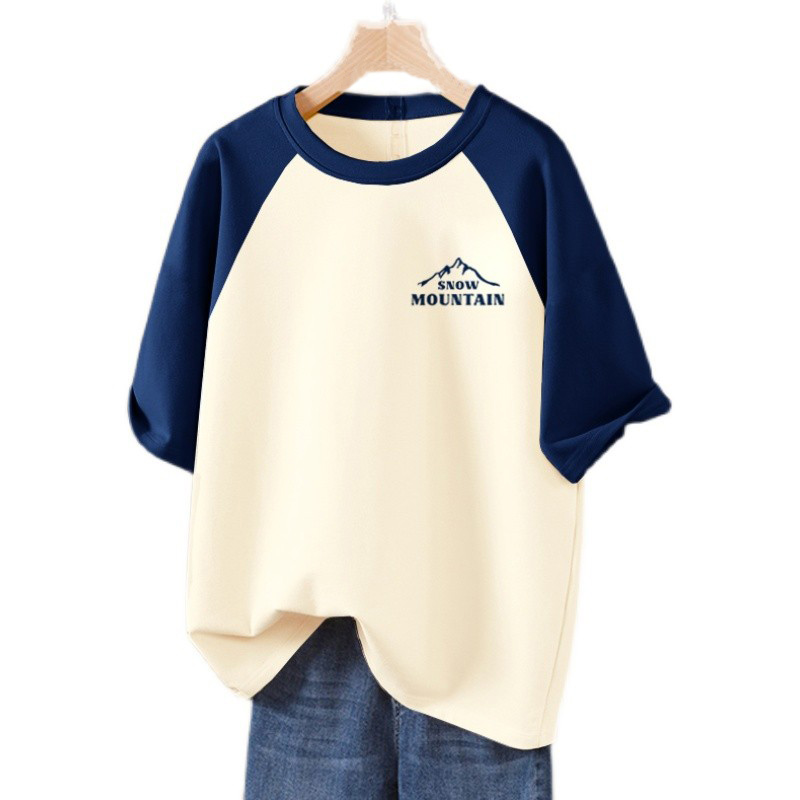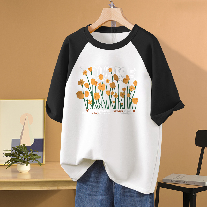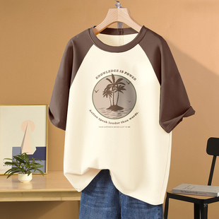 复古港味chic上衣插肩袖 灰色纯棉正肩短袖 宽松美式 新款 T恤女夏季