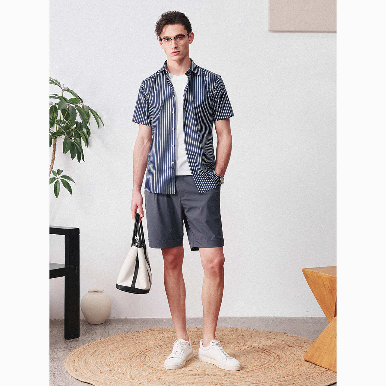 防皱正装 男修身 职业上班通勤条纹衬衣 衬衫 液氨易打理纯棉商务短袖