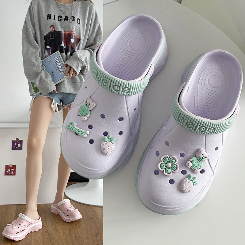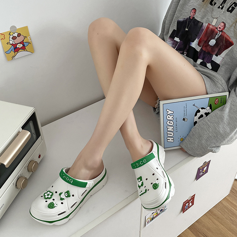 软底增高包头外穿拖鞋 夏季 防滑厚底不臭脚女 女士踩屎感新款 洞洞鞋