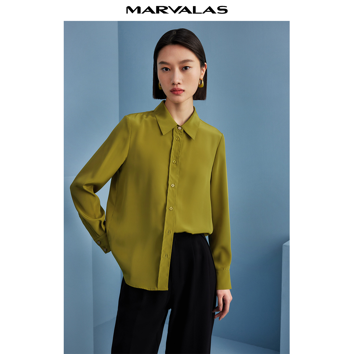 宽松长袖 曼德诗简约纯色衬衫 通勤气质时尚 新款 翻领衬衣 女2025秋季