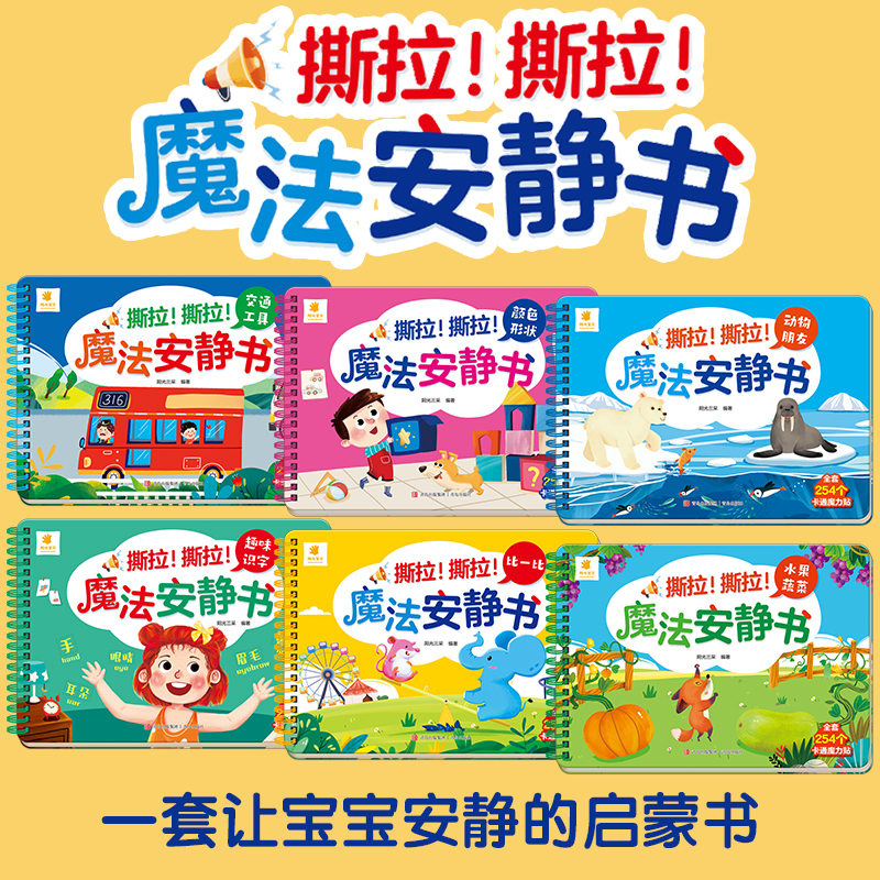 撕撕书婴儿魔术贴全套魔法安静书早教撕不烂 1—2岁儿童绘本益智撕拉玩具 宝宝手撕贴纸书3到6个月可反复粘贴婴幼儿启蒙认知书籍0