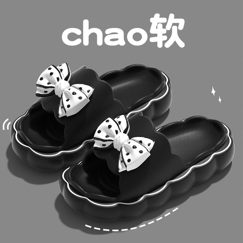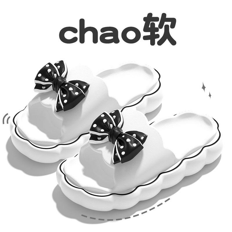 厚底外穿可爱蝴蝶结沙滩一字拖 新款 奶呼呼踩屎感凉拖鞋 女2025夏季