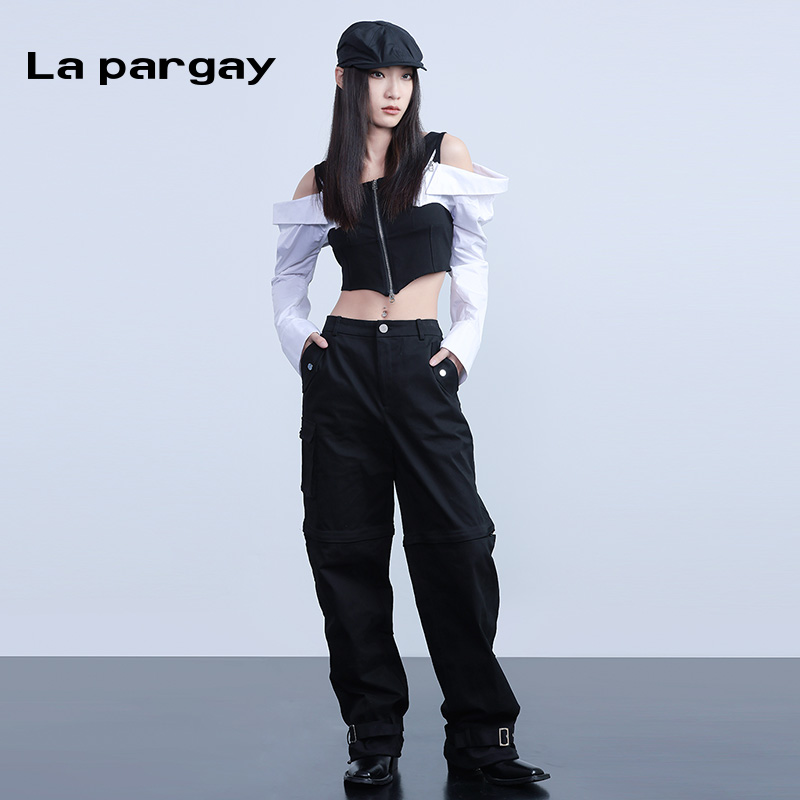 新款 女式 黑色个性 纳帕佳工装 裤 2025春季 休闲高腰长款 子 收口小脚裤