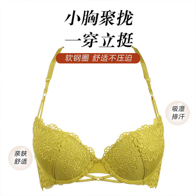 曼妮芬无钢圈性感蕾丝内衣女聚拢小胸文胸软支撑胸罩 朱珠同款