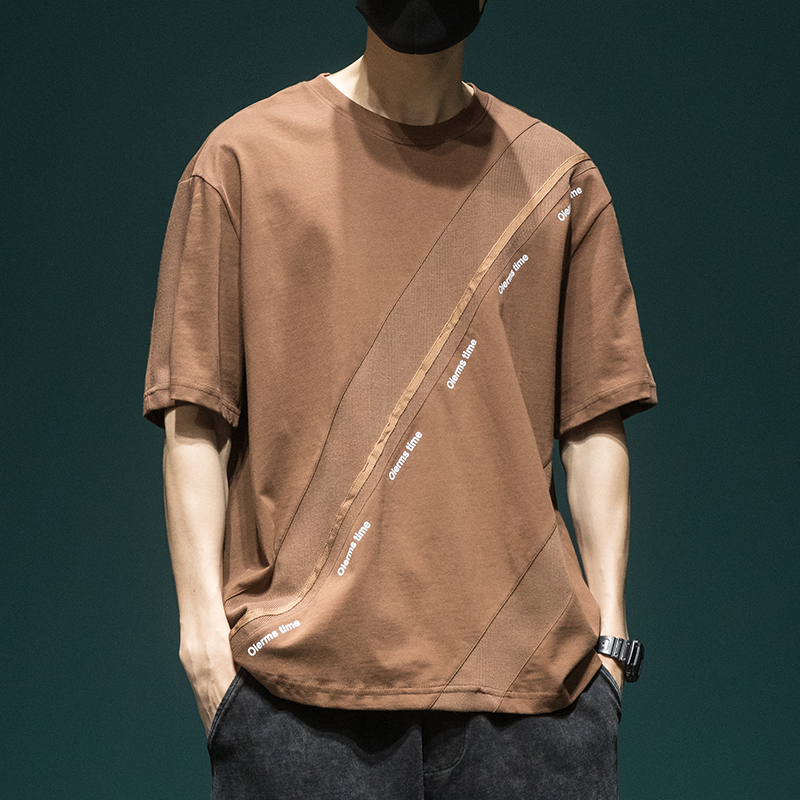 潮牌拼接印花短袖 ins潮流半袖 T恤男士 设计感小众夏季 宽松大码 美式