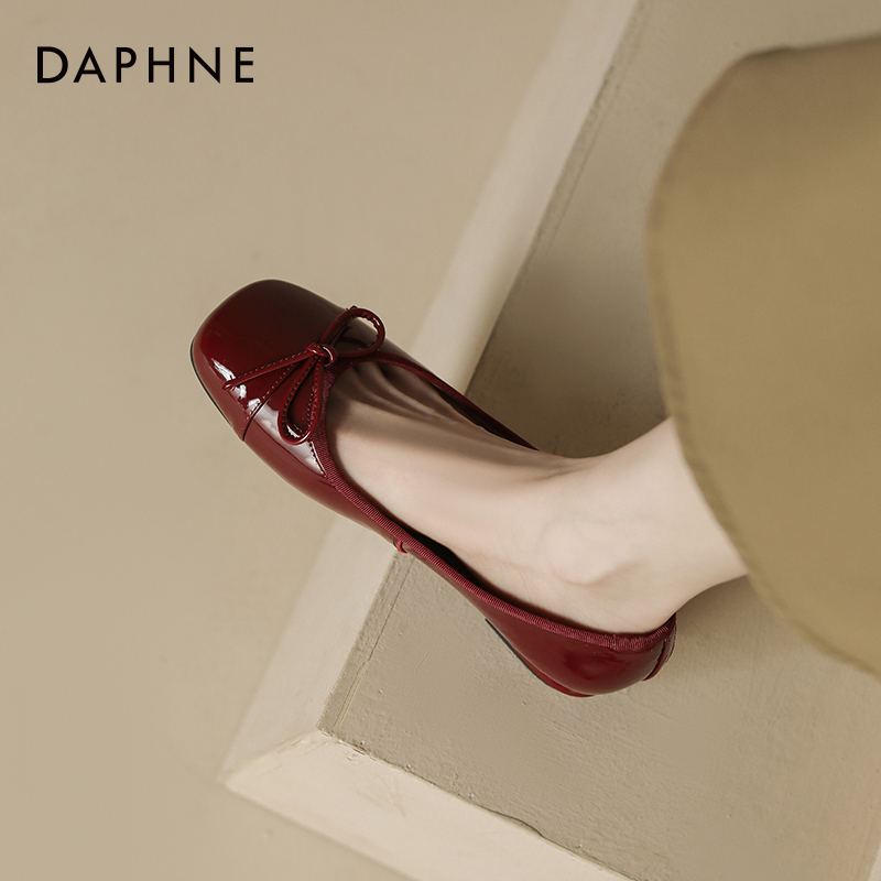 平底鞋 2025春季 新款 达芙妮单鞋 浅口小皮鞋 女鞋 婚鞋 女红色玛丽珍鞋