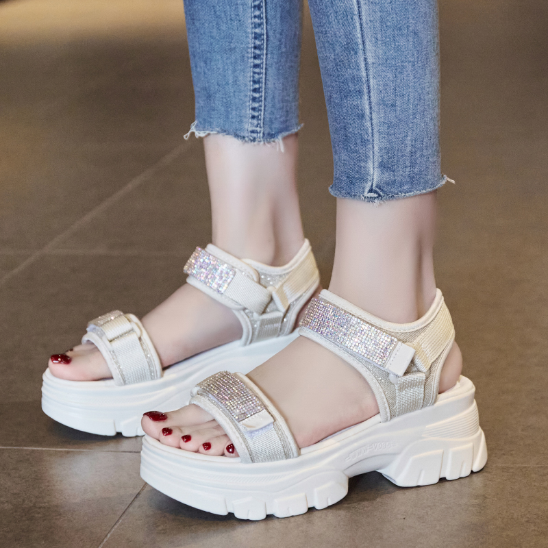 女士夏季 沙滩休闲女鞋 2023新款 网红时尚 子 百搭厚底增高松糕鞋 凉鞋
