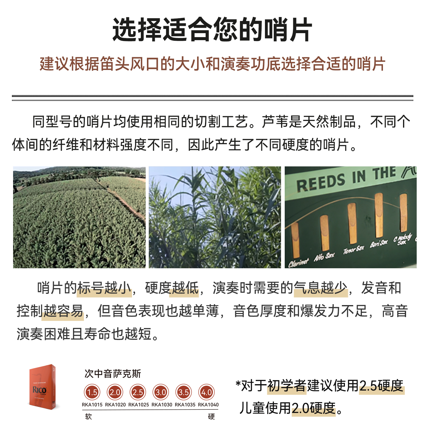 10片装 达达里奥 RKA 次中音萨克斯哨片降B调橙盒瑞口 美国RICO