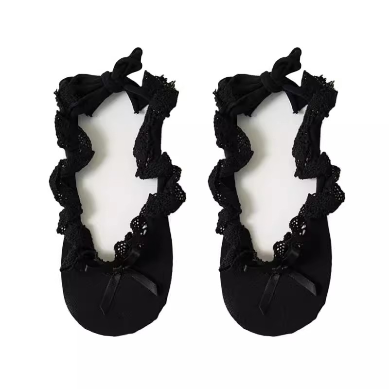 短袜隐形袜 芭蕾风袜子配小皮鞋 蕾丝花边船袜女纯棉不掉跟夏季 薄款