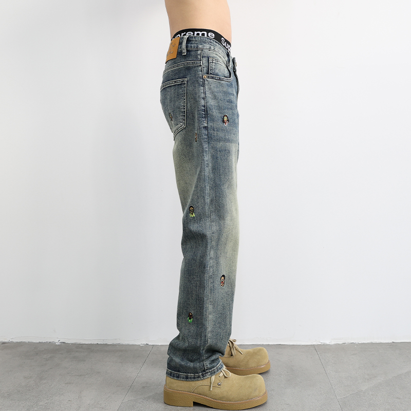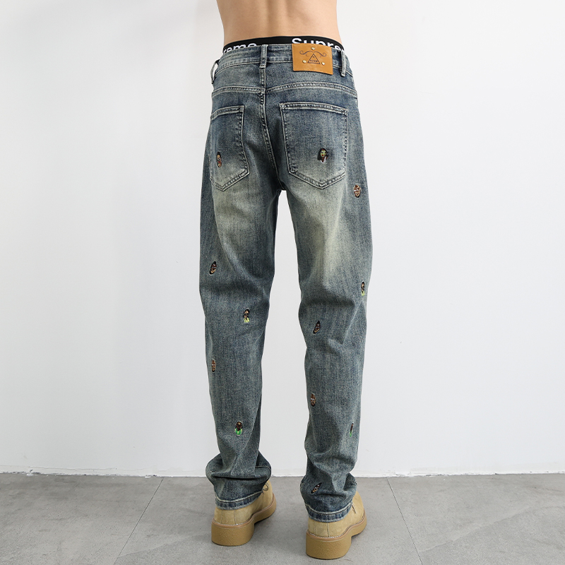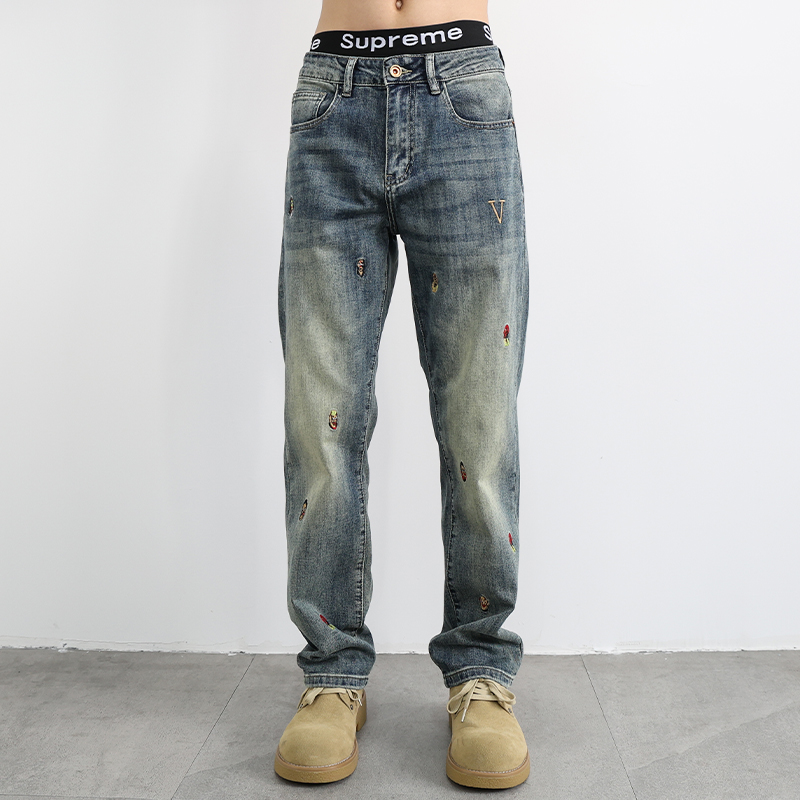 修身 直筒男士 牛仔裤 美式 长裤 痞帅2025新款 潮牌爆款 子 高端刺绣秋季