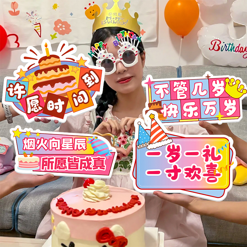 网红生日打卡快乐kt板手举牌氛围拍照道具手持牌生日儿童场景布置