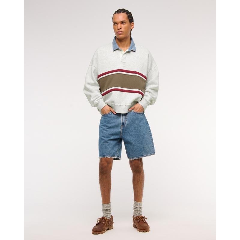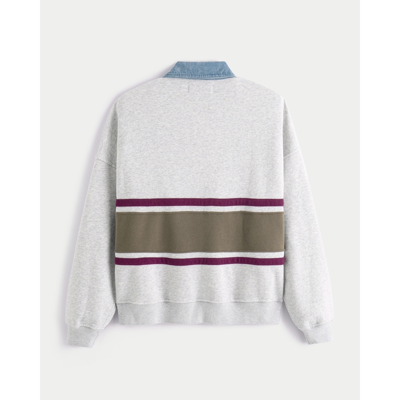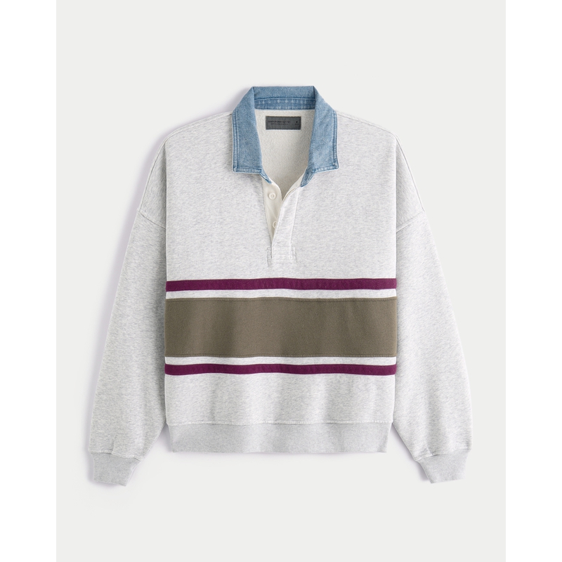 套头卫衣122 抓绒复古宽松撞色条纹POLO领长袖 5294 25春季 AF男装