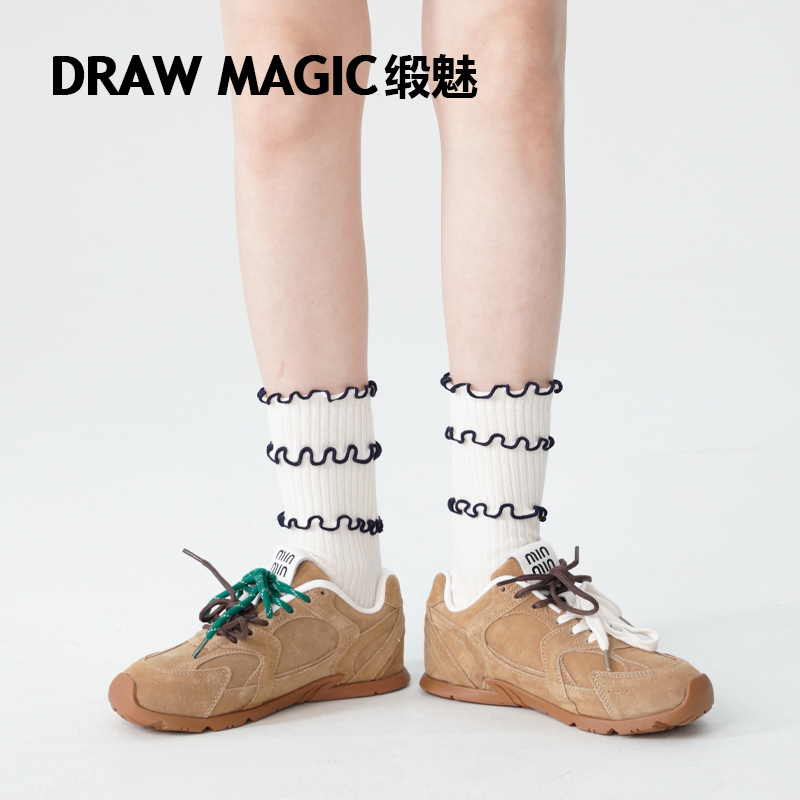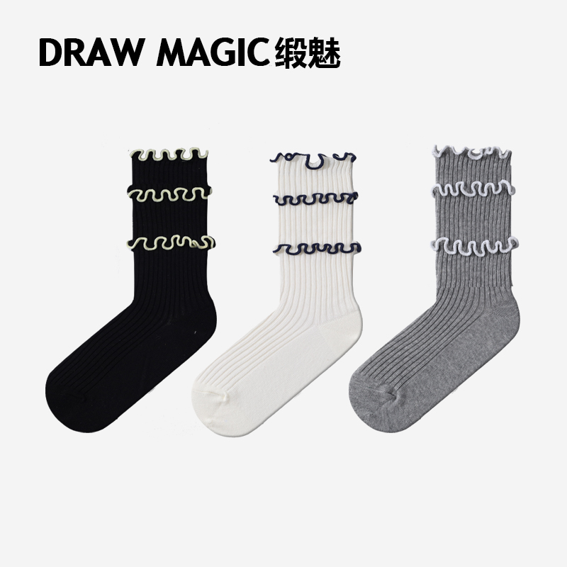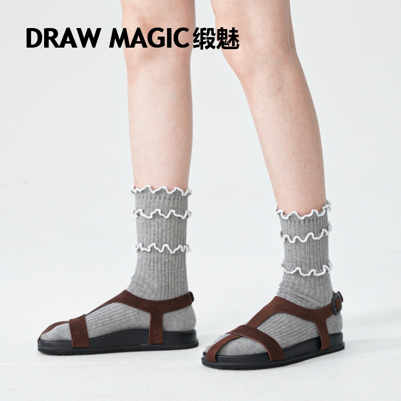 中筒袜夏天款 搭配勃肯鞋 卷边袜 缎魅袜子女夏ins潮时尚 DRAWMAGIC