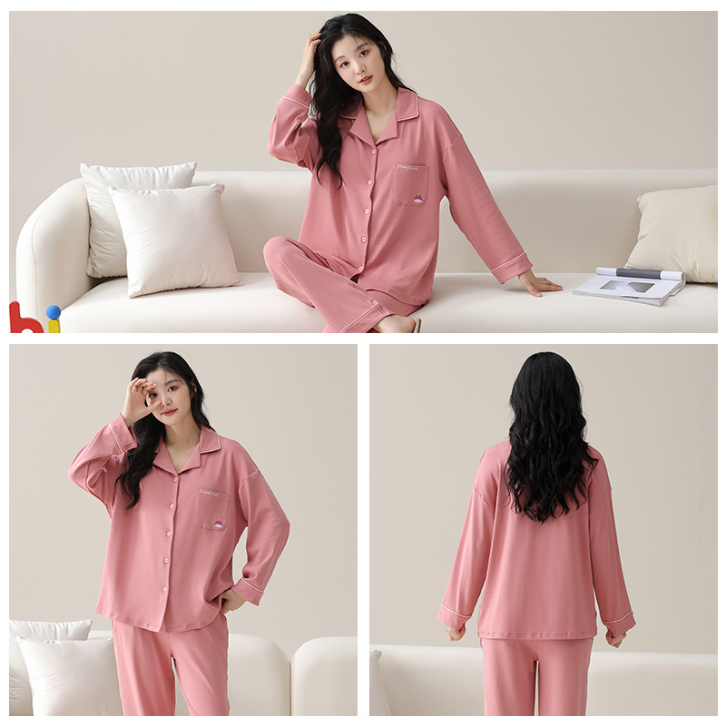 高级感带胸垫休闲家居服套装 开衫 纯棉睡衣可外穿长袖 婷美2025新款
