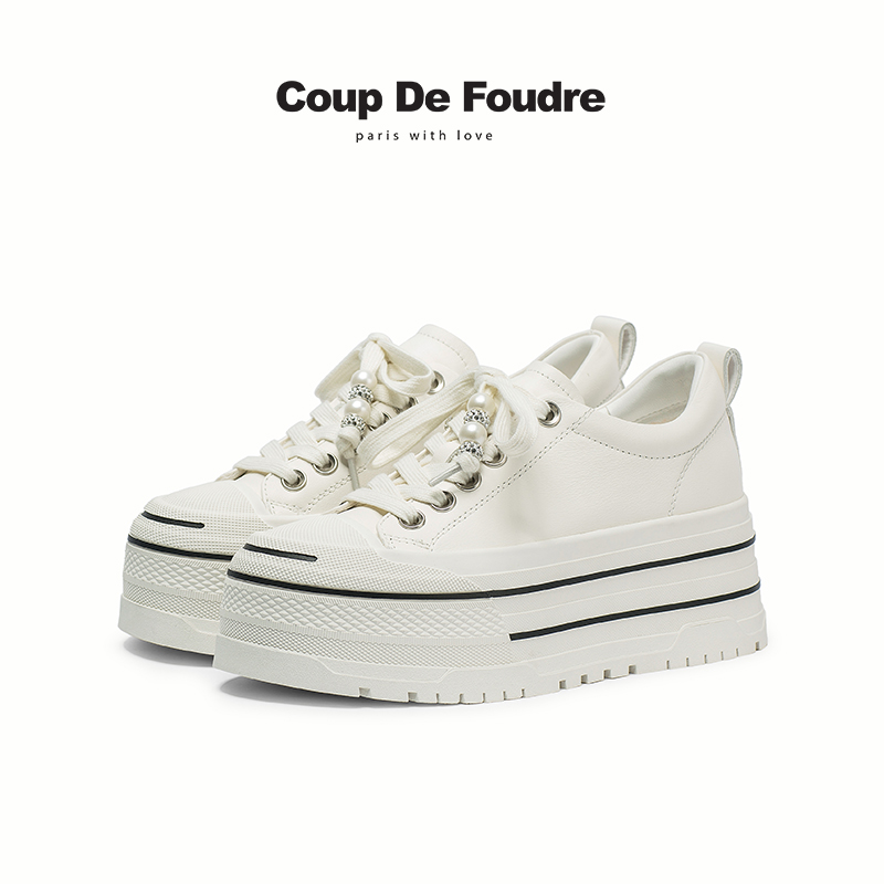 2025春季 潮流串珠休闲鞋 新款 时尚 女 百搭真皮厚底增高板鞋 CDF女鞋