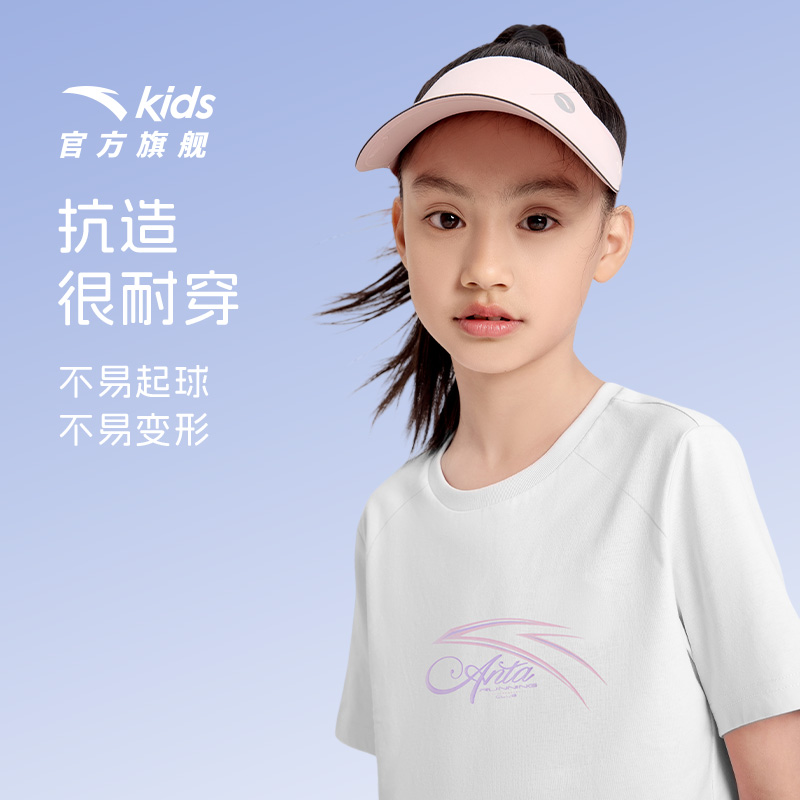 柔软亲肤中大童运动短袖 安踏儿童女童针织短袖 新款 2025夏季 T恤 衫