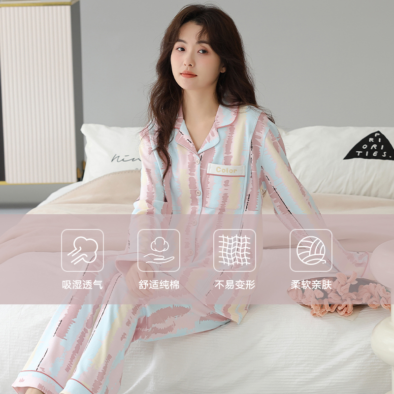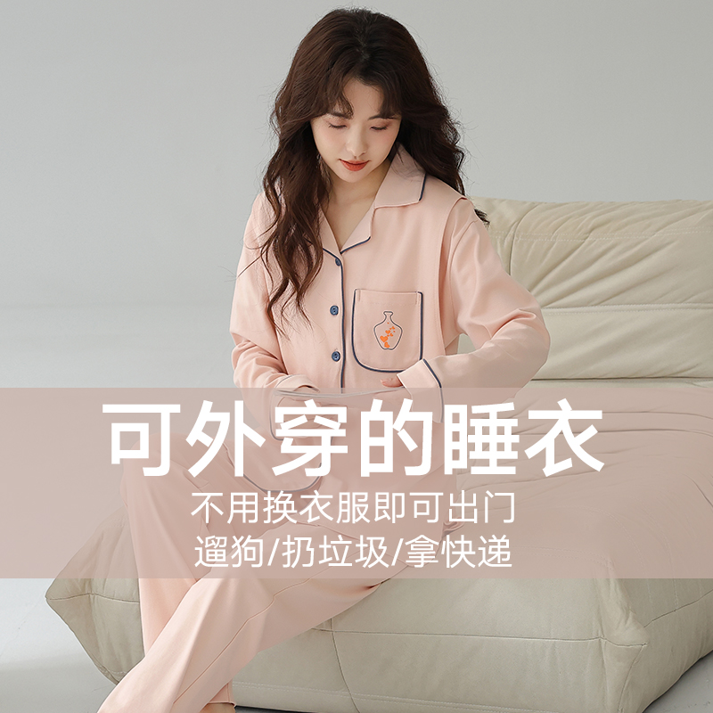家居服薄款 秋冬款 冬季 睡衣女士春秋款 套装 纯棉长袖 大码 春秋季