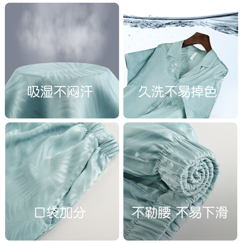 可外穿新款 套装 秋冬 缎面睡衣7A抗菌冰丝短袖 ubras流光家居服男士