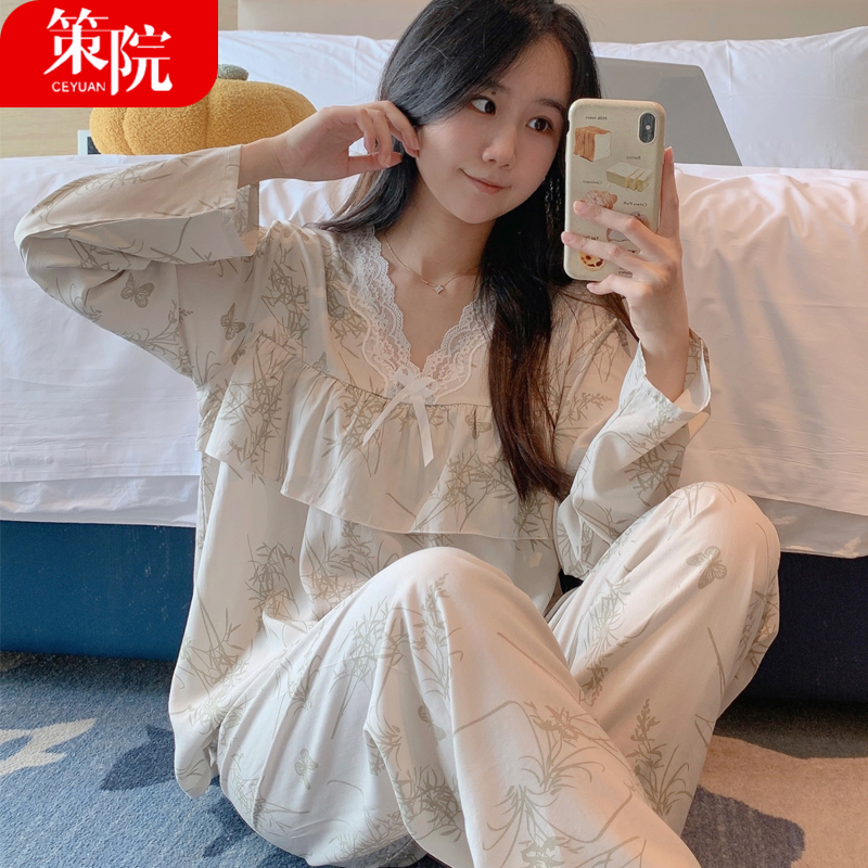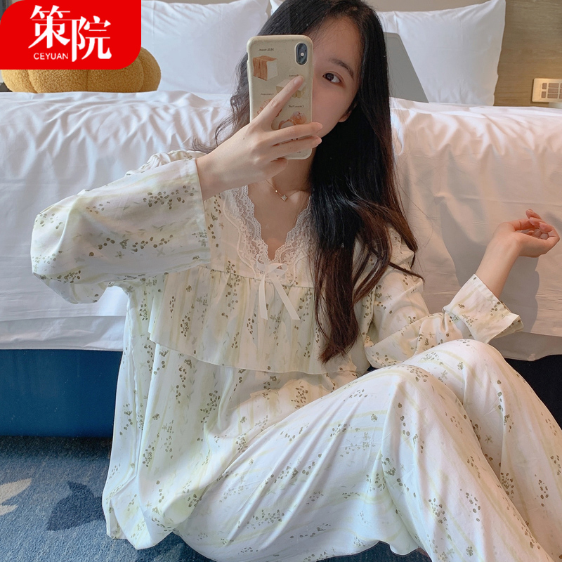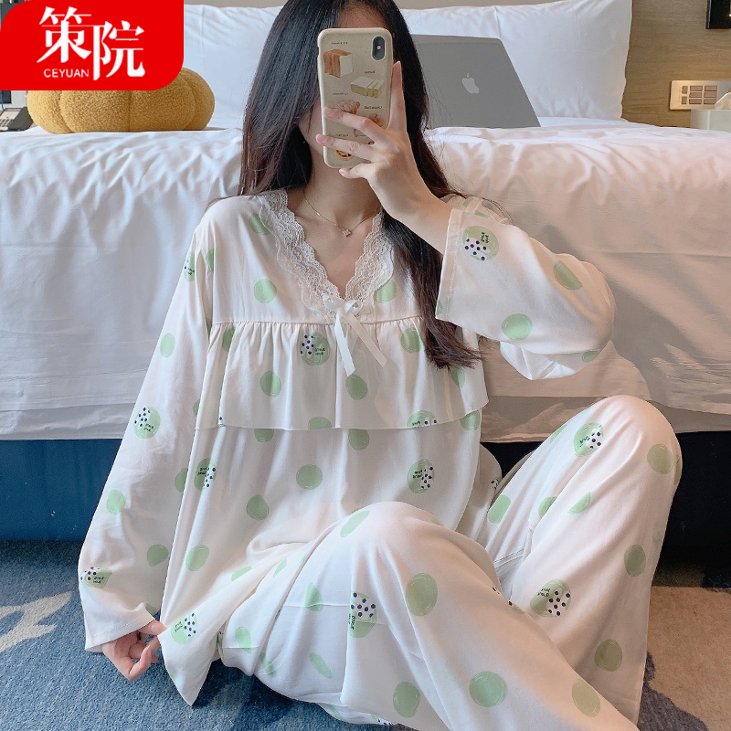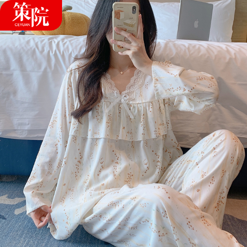 长袖 薄款 人造棉空调家居服绵绸月子服 夏季 防凸点棉绸睡衣女士套装