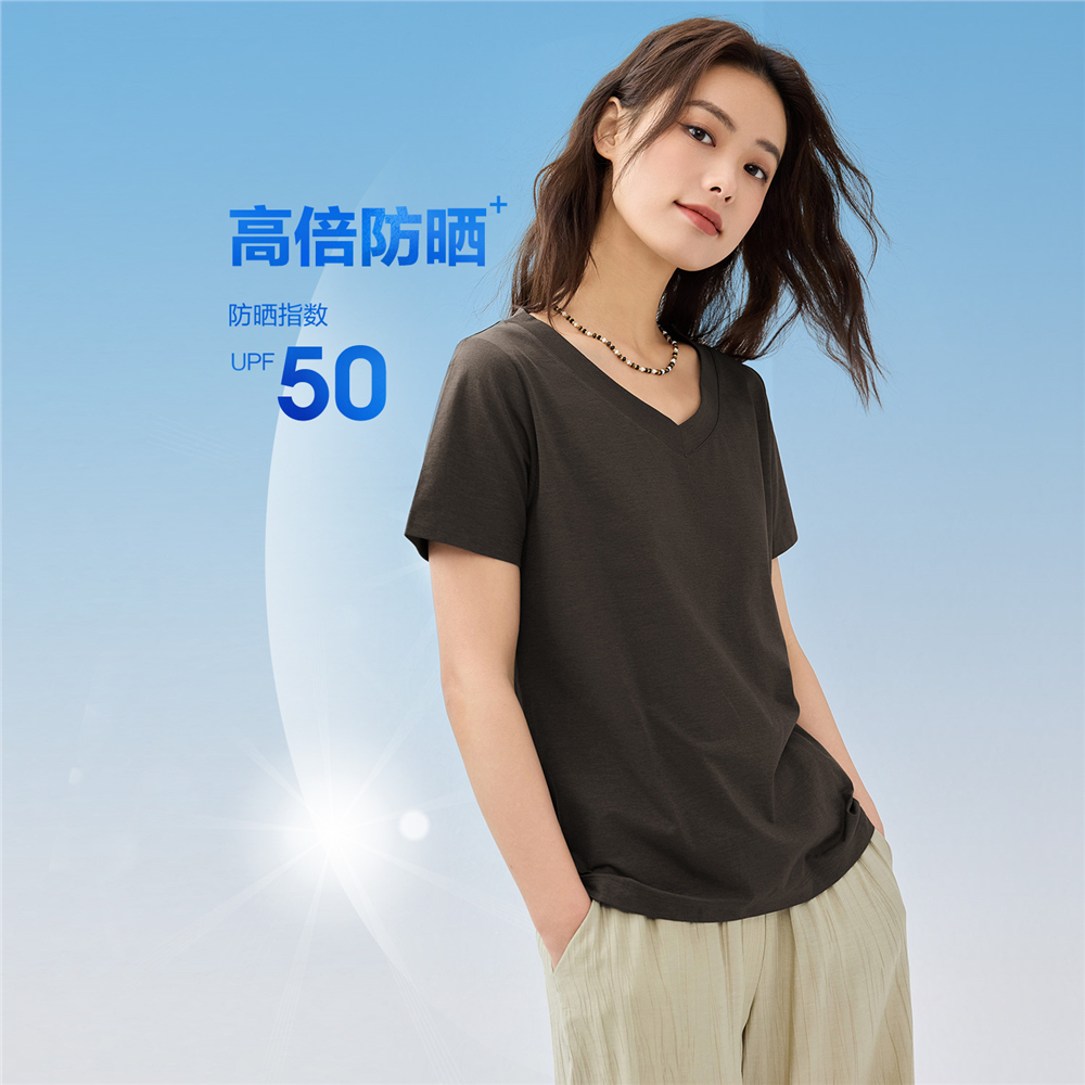 佐丹奴户外穿搭3A抗菌T恤女凉感纯色V领吸湿速干短袖 05325445 T恤