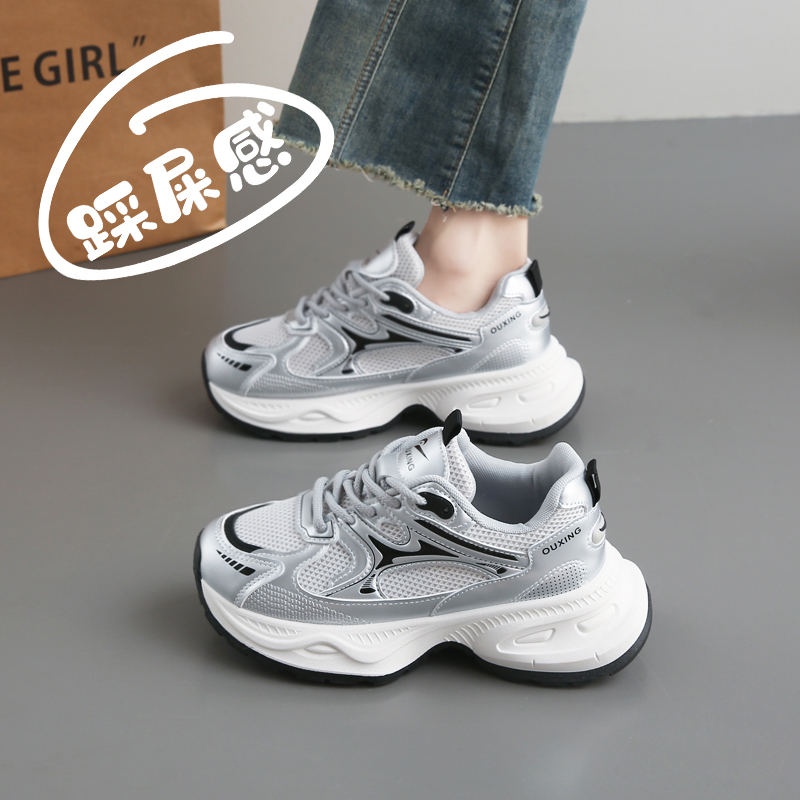 2025春季 休闲鞋 新款 胖mm时尚 子 软底不累脚老爹鞋 宽脚胖脚运动女鞋