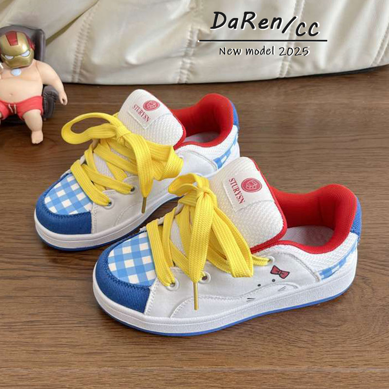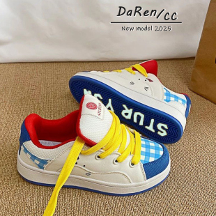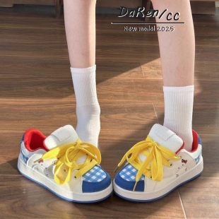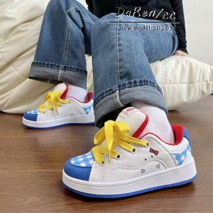 学生少女心百搭休闲板鞋 原创可爱猫咪拼色面包鞋 女ins潮2025新款