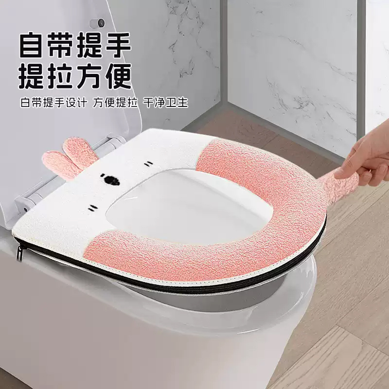 Edo马桶坐垫四季 加厚马桶垫 通用毛绒家用防水坐便套垫圈拉链款