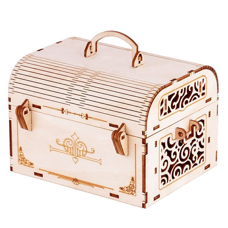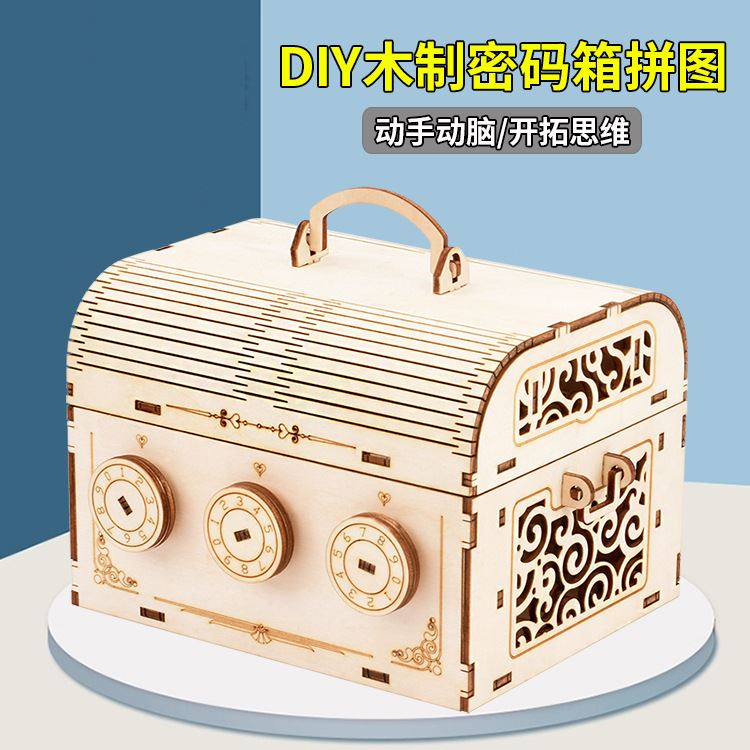 3d立体木质拼图创意益智密码 箱儿童模型拼图