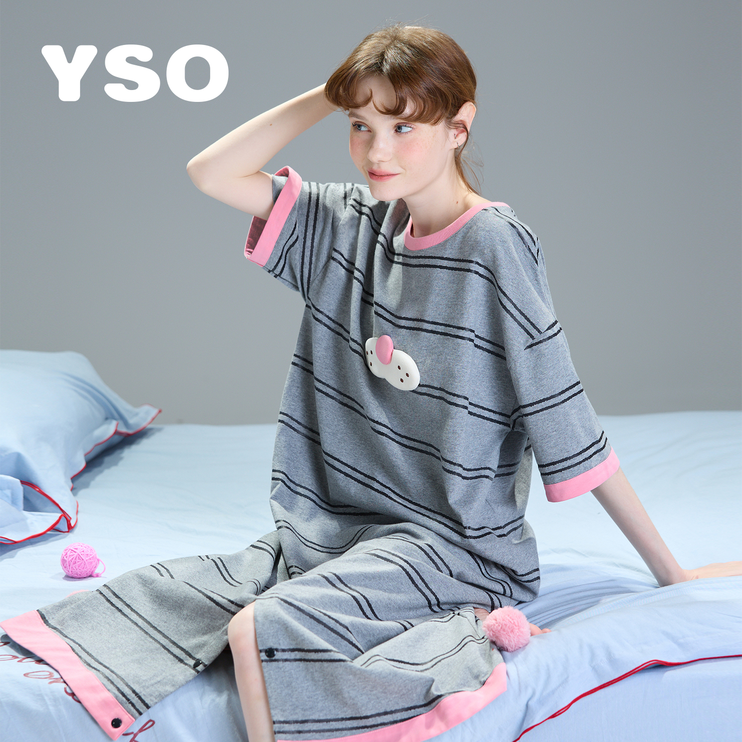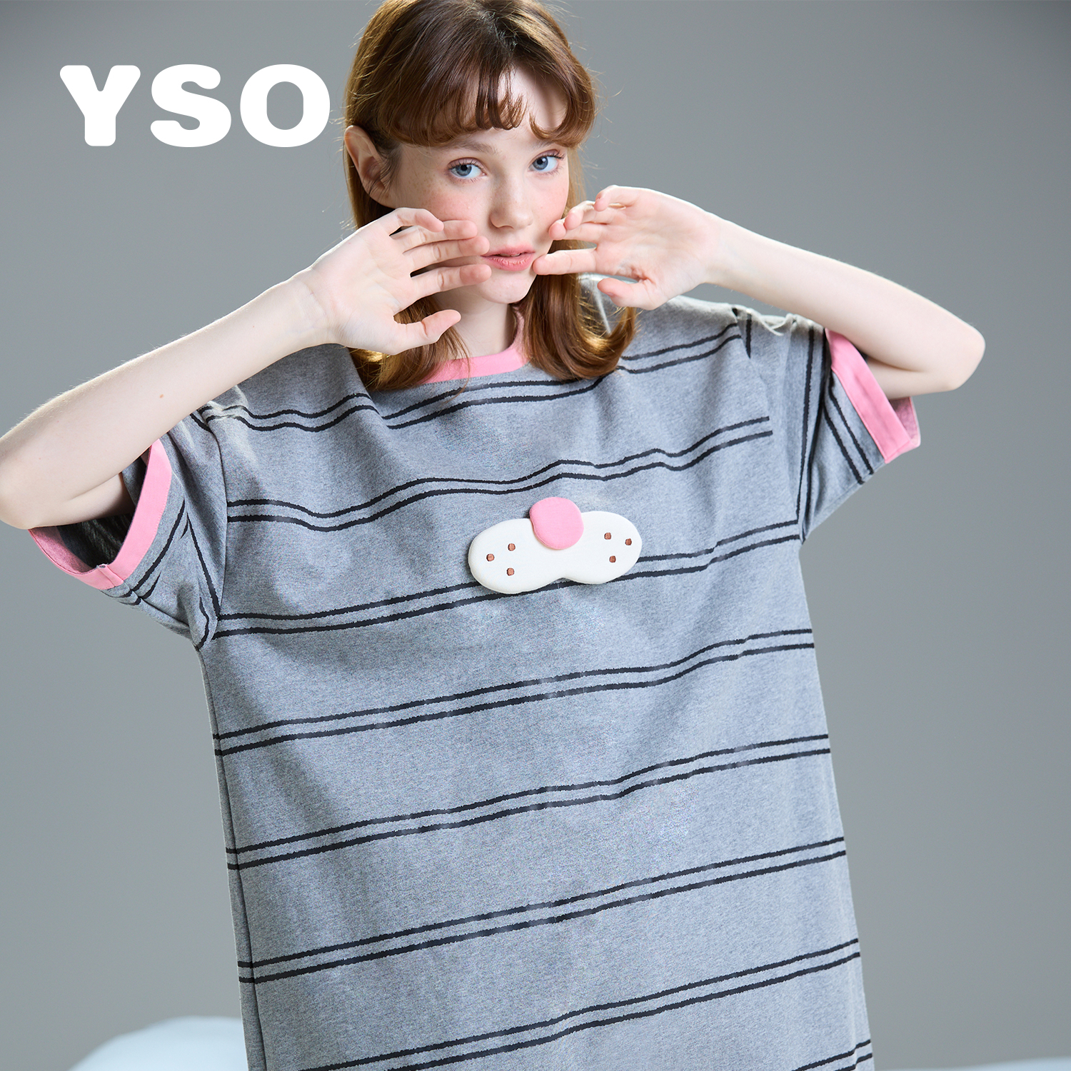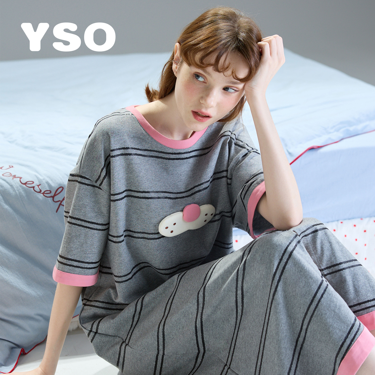 连体睡衣女夏睡裙可爱条纹家居服可外穿家居套装 yso 酷猫系列