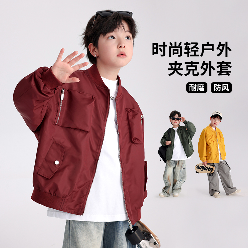 棒球服外套2025新款 工装 儿童男孩开春炸街夹克潮 酷帅美式 男童秋装