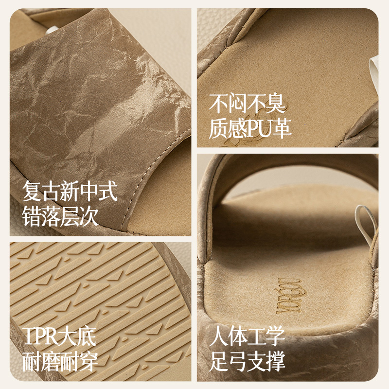 室内居家用地板防滑防臭办公室春秋四季 女夏季 坡跟拖鞋 远港新中式