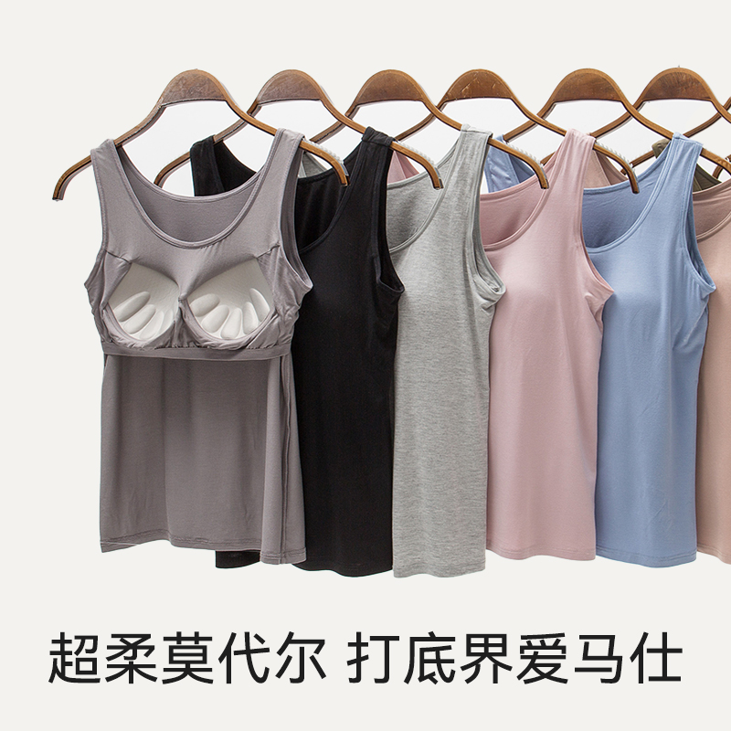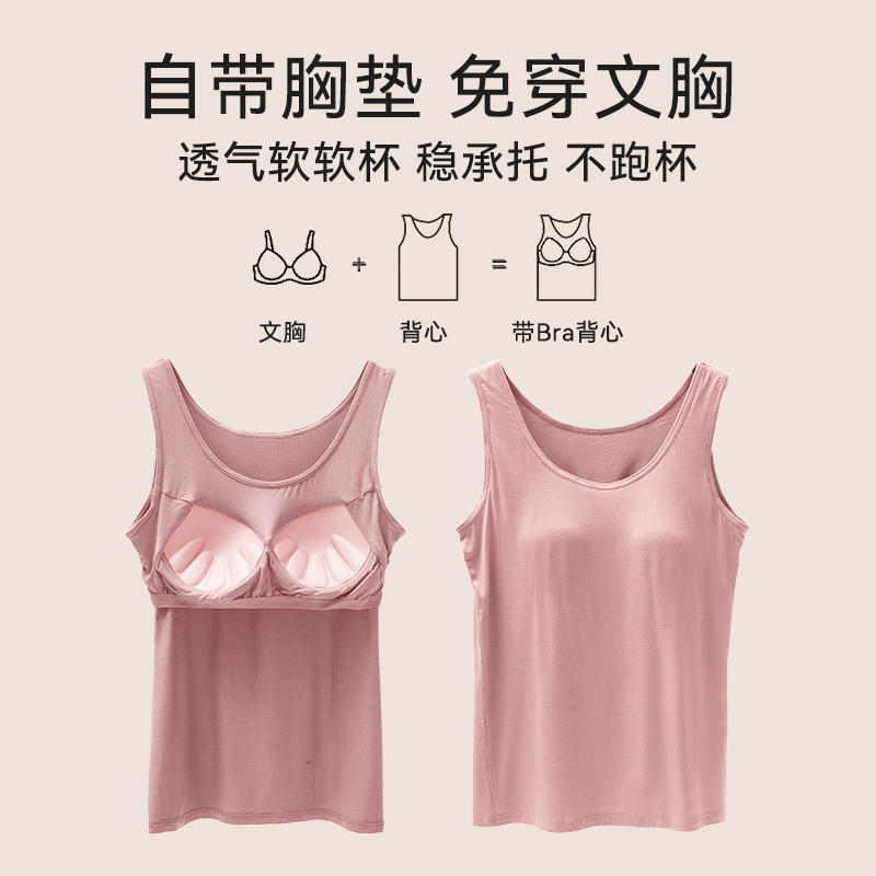可外穿圆领打底上衣 夏季 短袖 t恤女莫代尔棉带胸垫免穿文胸一体式