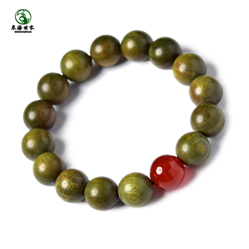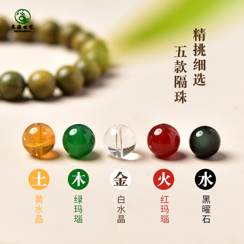 绿檀木手串女东海水晶玛瑙玉髓黑曜石单珠文玩檀香木黄白水晶手链