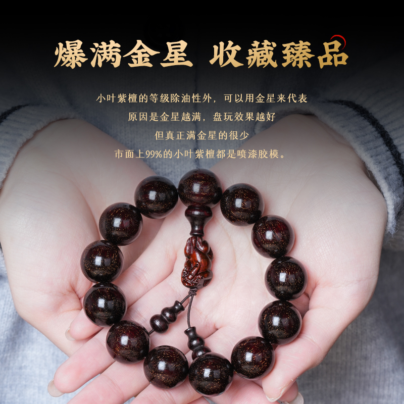 保真印度小叶紫檀手串男2.0老料满金星檀香木108颗文玩佛珠手链女