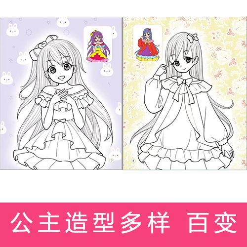 美少女创意绘画书 幼儿园涂鸦填色本 幼儿绘画启蒙教材涂色秀百变公主 10岁儿童学画画书入门宝宝涂色书 全8册完美公主涂色书2