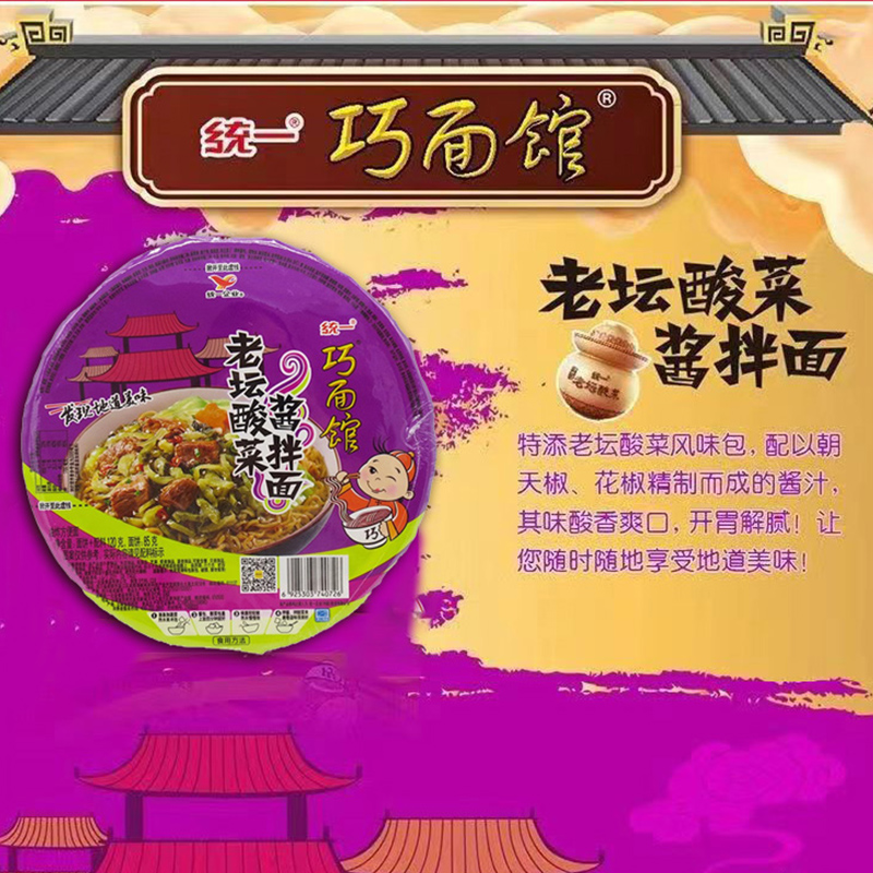 统一巧面馆老坛酸菜酱拌面干拌面碗装 冲泡速食泡面夜宵酸辣方便面