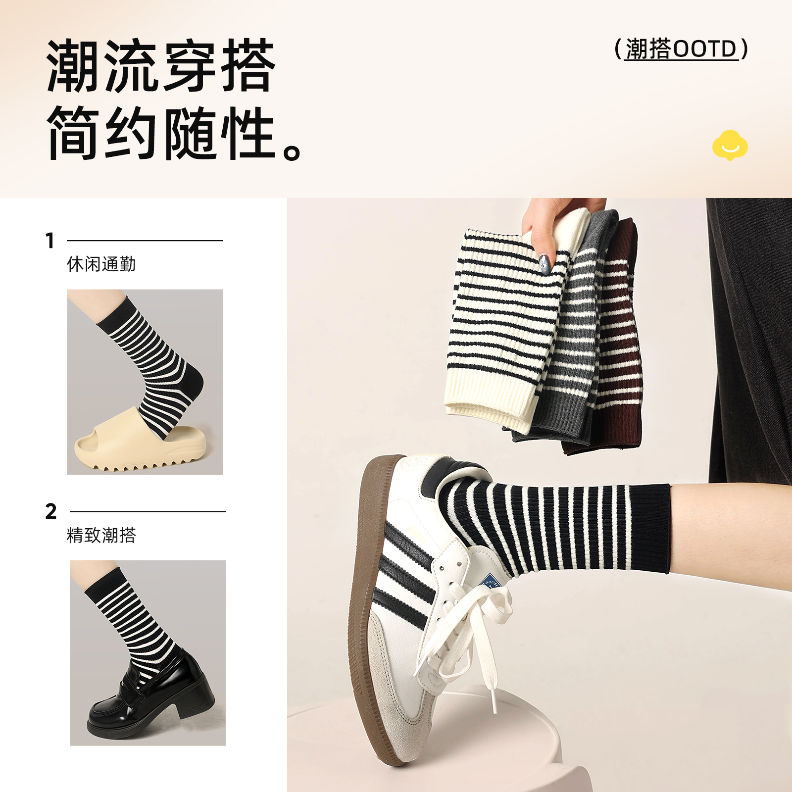 黑白条纹袜子女中筒堆堆袜秋冬新款 纯棉抗菌防臭长袜搭配勃肯鞋