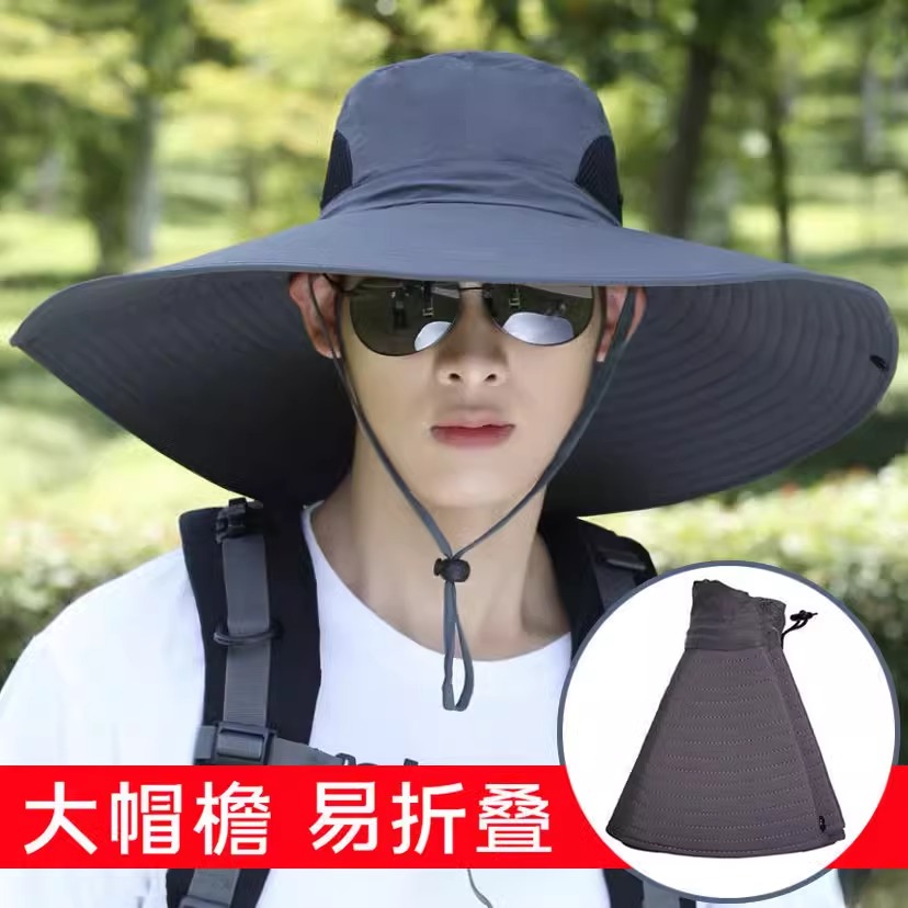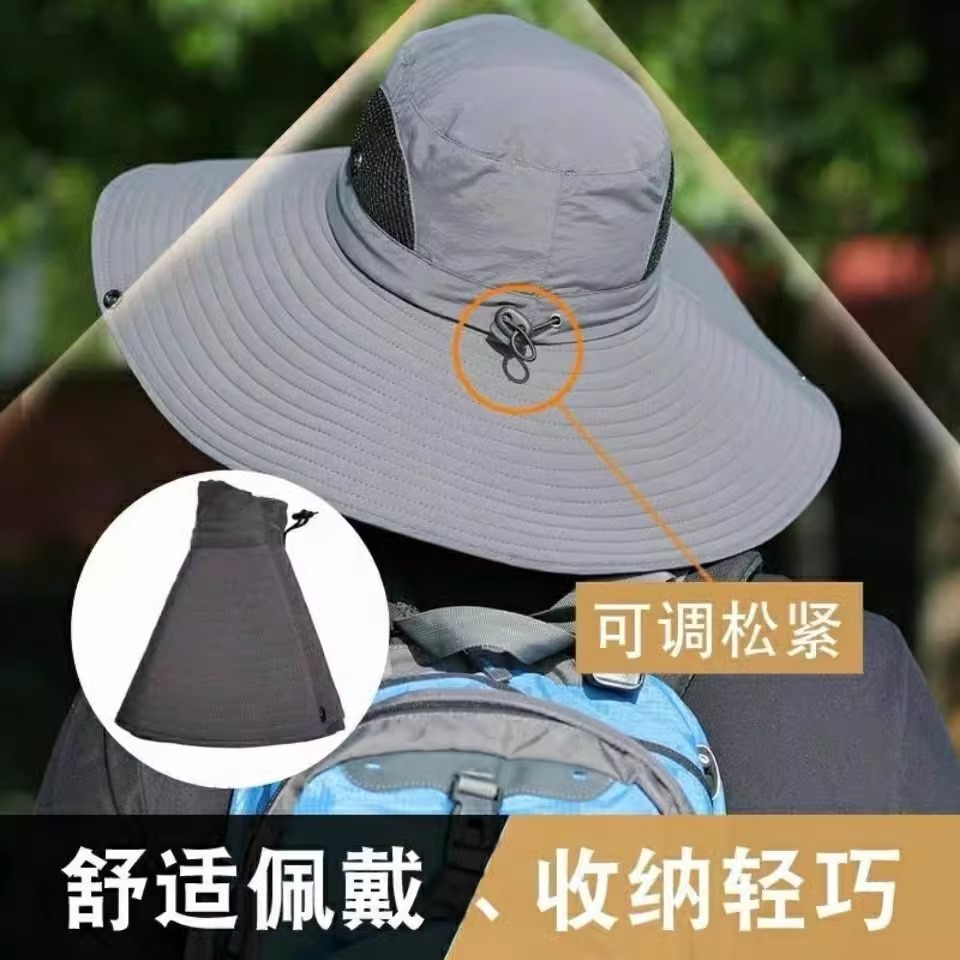 防晒帽男士 遮阳帽户外登山钓鱼大檐遮脸防紫外线渔夫太阳帽子 夏季