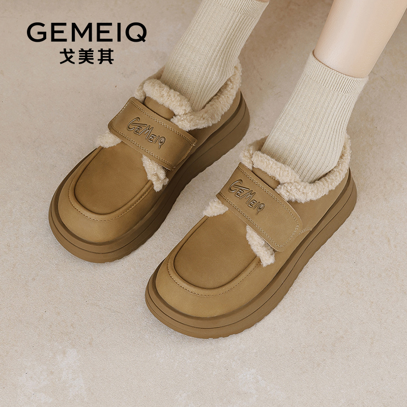 皮毛一体户外保暖加绒加厚棉鞋 冬季 女 2025新款 环球厚底雪地靴女款