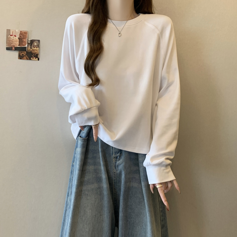 正肩长袖 插肩袖 T恤女春秋装 宽松内搭打底衫 上衣 韩版 简约纯色短款