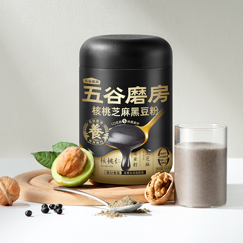 五谷磨房黑芝麻糊核桃芝麻无糖黑豆粉黑之养五黑粉代餐粉营养早餐