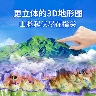 三维沙盘浮雕地理地势地貌图学生家用客厅挂画办公室装 北斗中国地形3d立体凹凸和世界地形图精雕 2025新版 饰 1350超大高清精雕