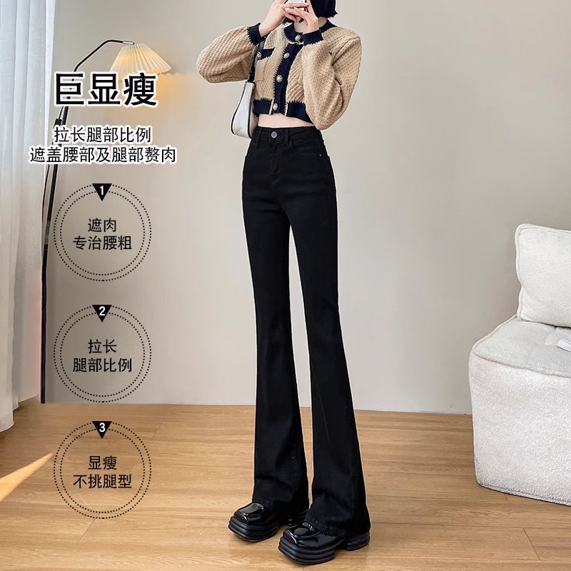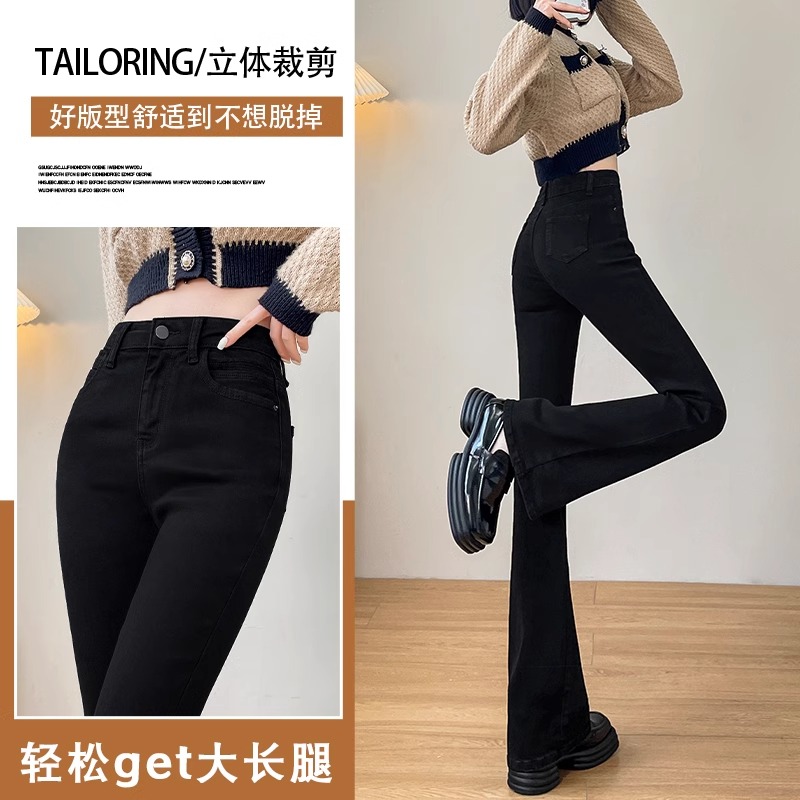 微喇牛仔裤 加绒喇叭裤 高腰显瘦加厚黑色冬季 爆款 女秋冬2024年新款