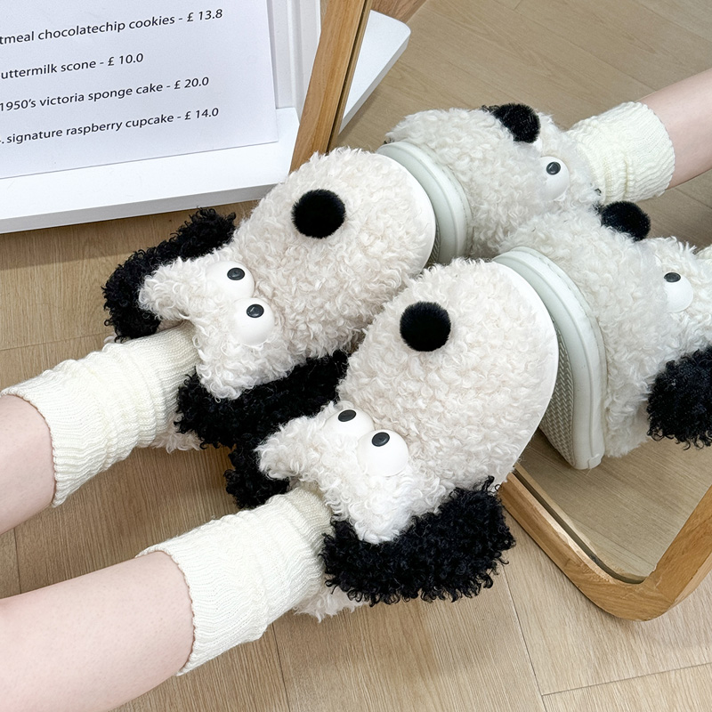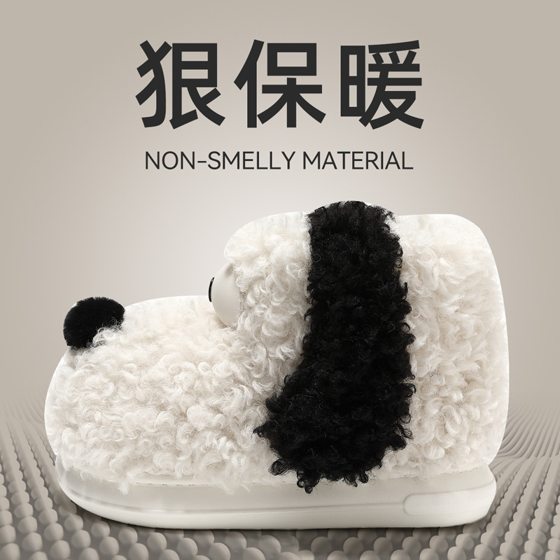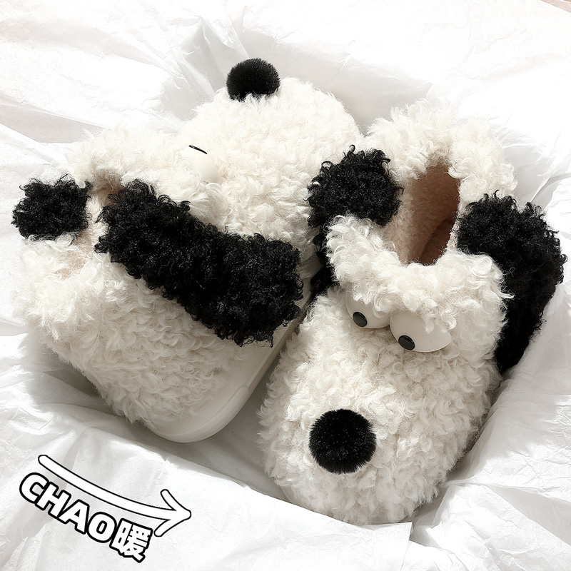 男 室内家居厚底毛绒保暖情侣棉鞋 可爱大耳狗高帮包跟棉拖鞋 女冬季