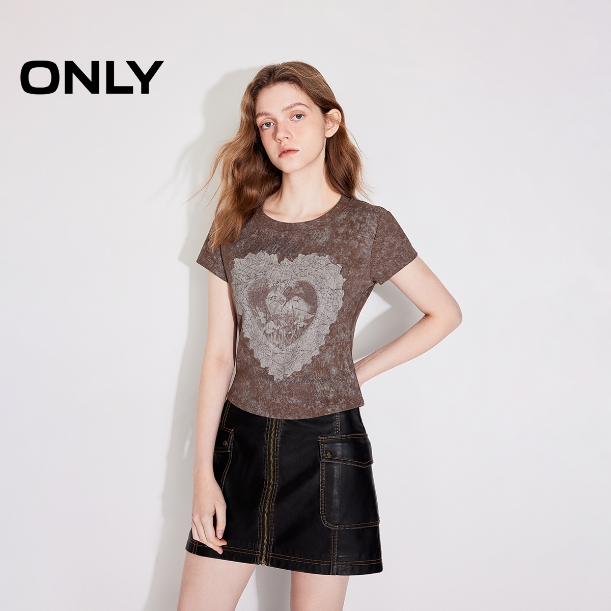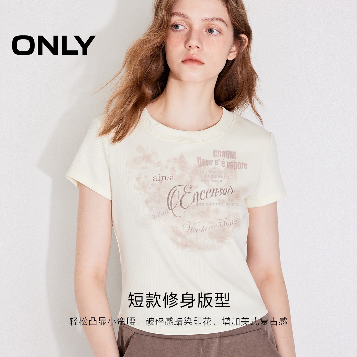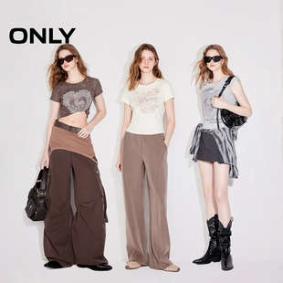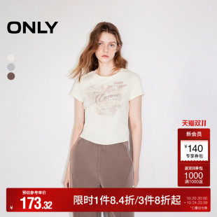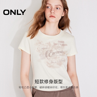 正肩印花圆领短款 ONLY奥莱2025夏季 复古修身 美式 T恤女 新款