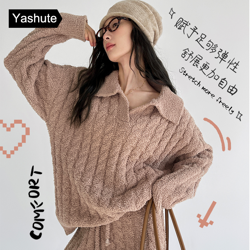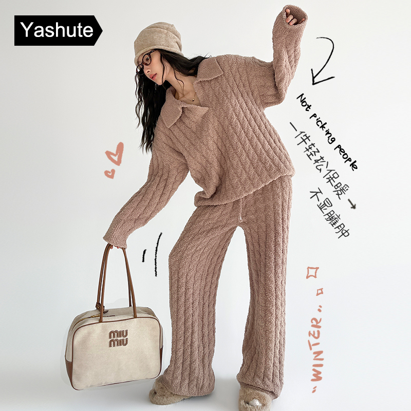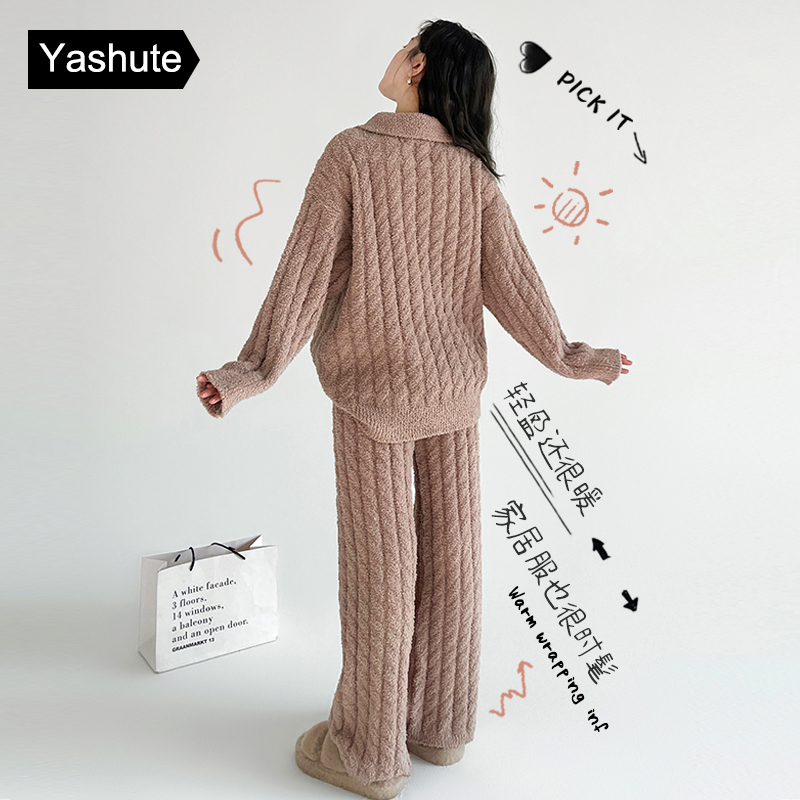 简约休闲可外穿慵懒睡衣套装 24年冬季 半边绒家居服女睡衣秋冬款