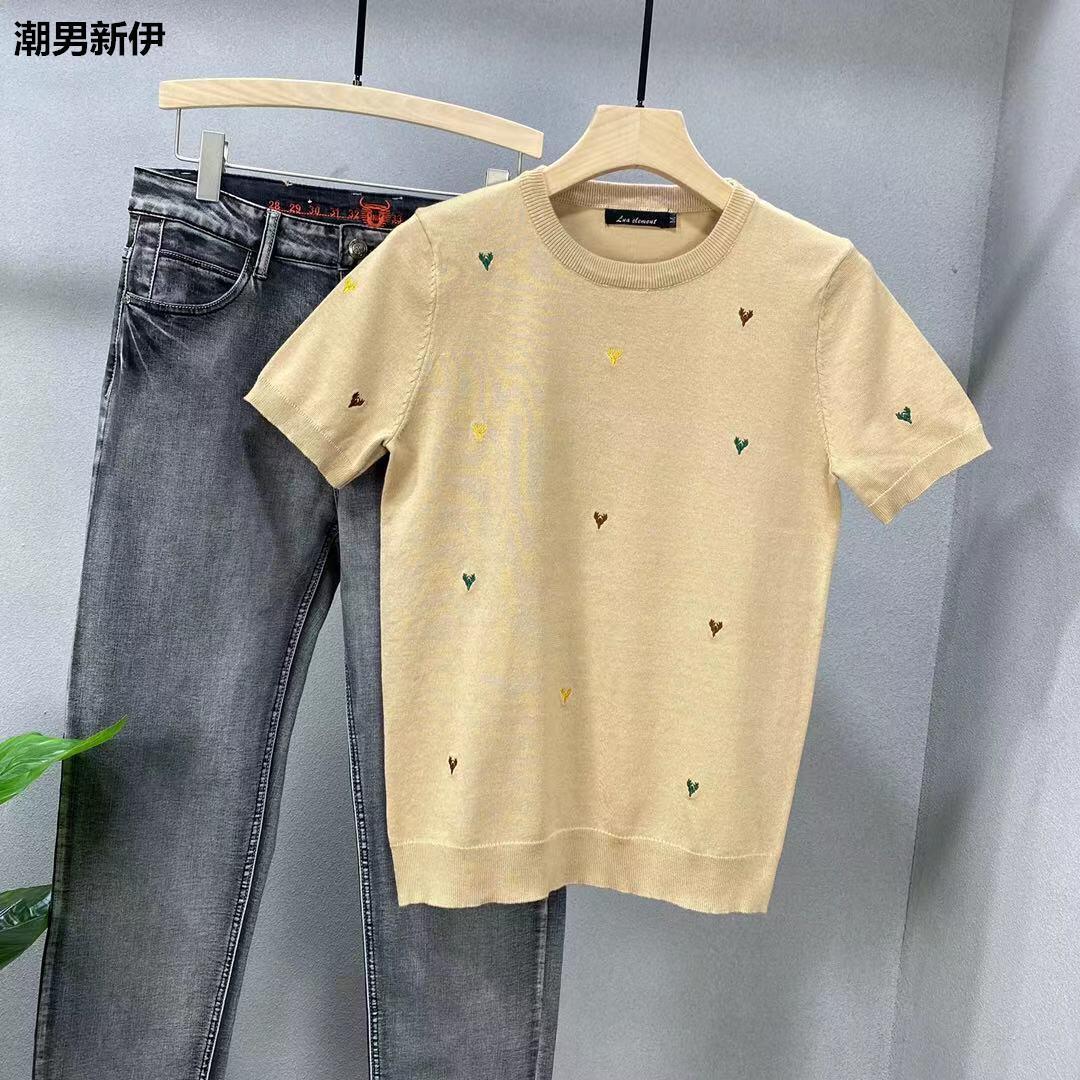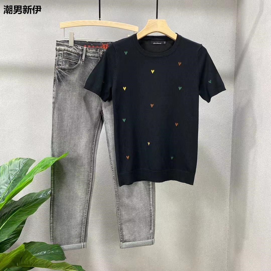 洋气新品 潮流刺绣打底衫 圆领修身 男青年韩版 针织衫 秋冬毛衣男短袖