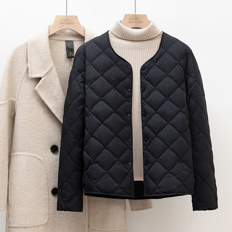 菱格外套 羽绒服女内胆大衣内搭伴侣圆领轻薄保暖短款 2024冬季 新款