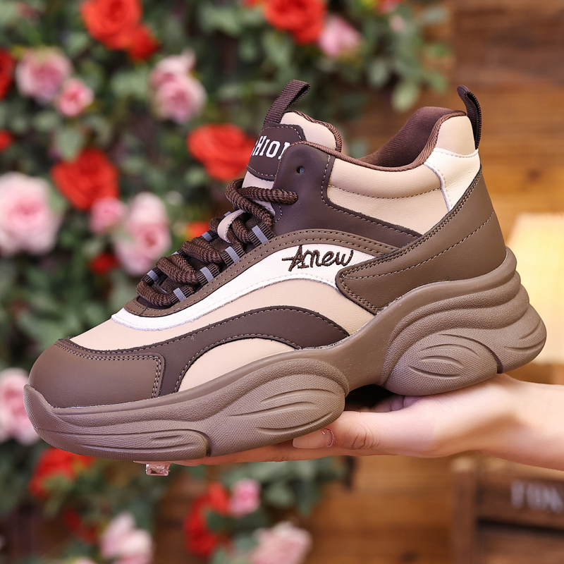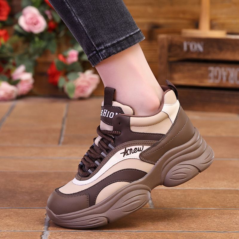 轻便防滑百搭休闲运动鞋 真皮厚底老爹鞋 秋季 显脚小2025新款 女 女款