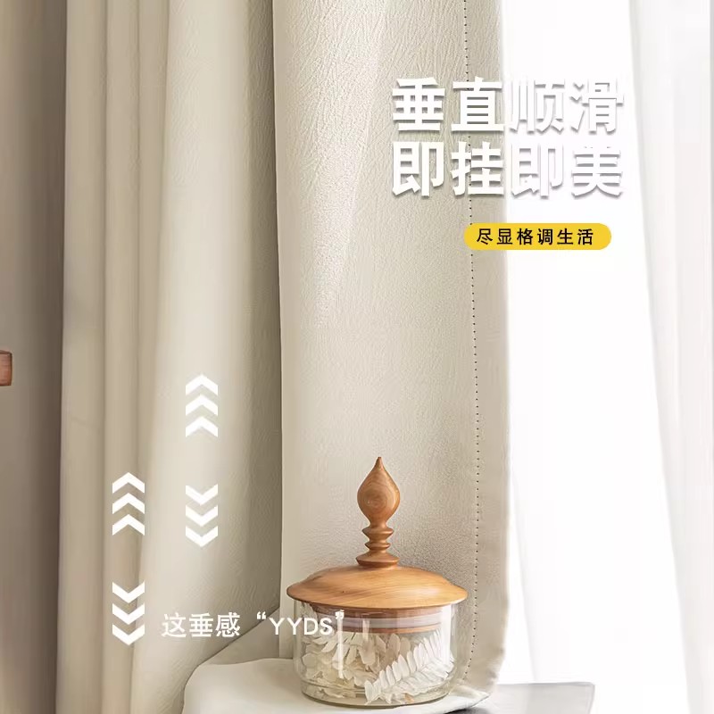 加厚遮光窗帘2024新款 芝士羊绒可可棉麻轻奢现代卧室客厅全遮阳布